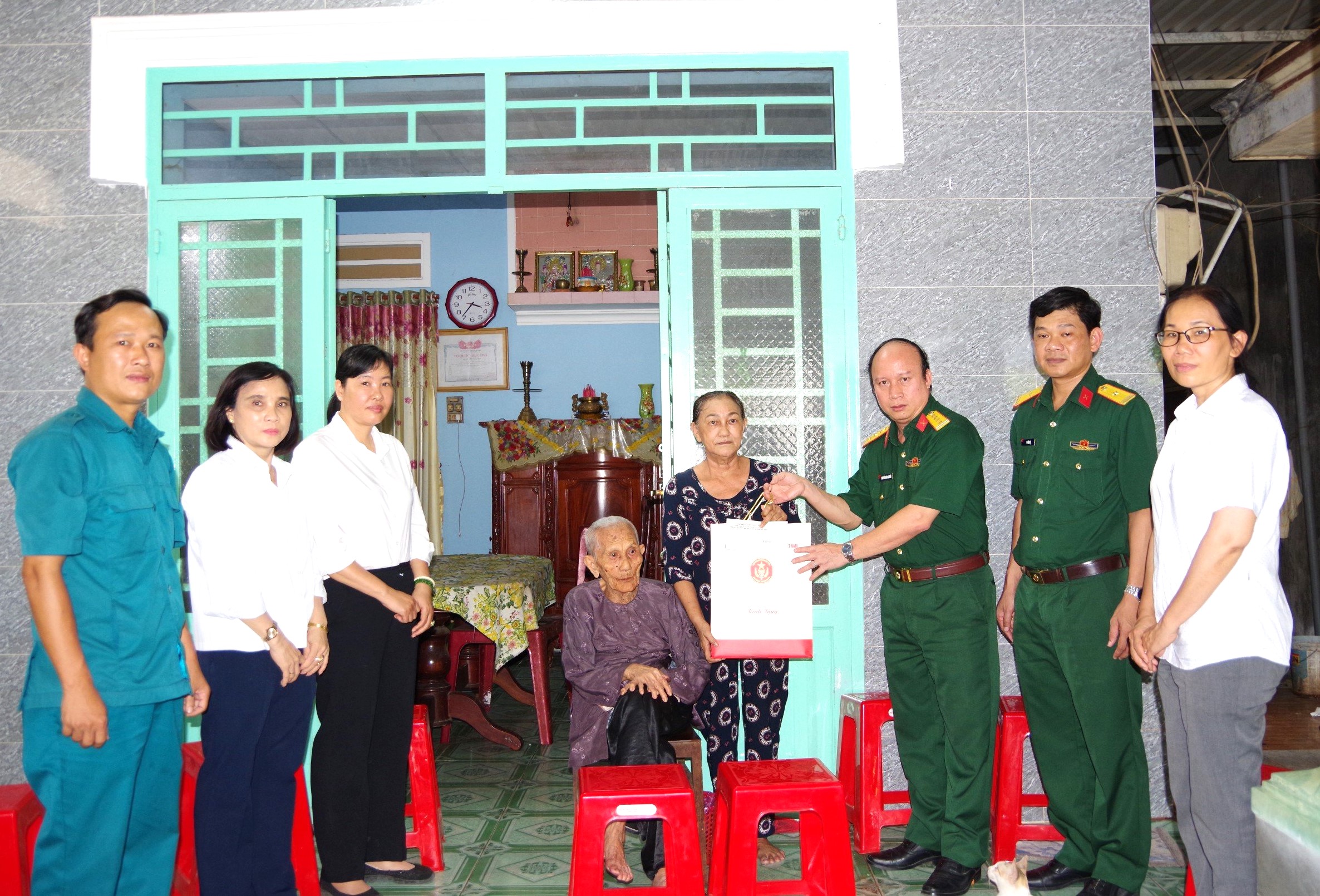 Đại tá Nguyễn Đình Chuẩn, Chính ủy Bộ CHQS tỉnh Bình Dương tặng quà Mẹ Việt Nam anh hùng.