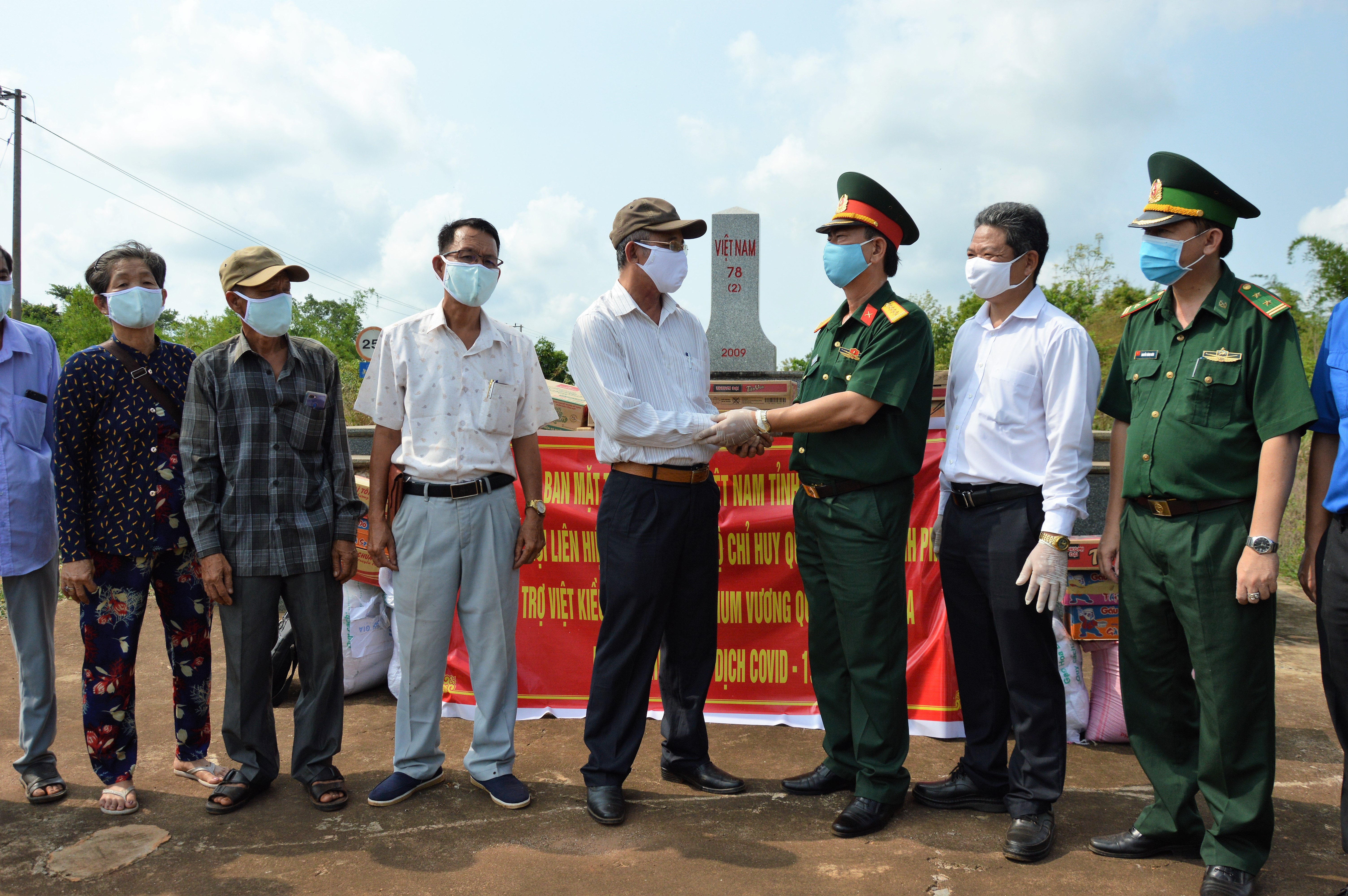 (QK7 Online) - Ngày 6/5, tại cột mốc 78 biên giới Việt Nam – Campuchia thuộc địa bàn xã Lộc Thịnh, huyện Lộc Ninh, tỉnh Bình Phước, Ủy ban MTTQ Việt Nam tỉnh phối hợp Bộ chỉ huy quân sự tỉnh và Tỉnh đoàn tổ chức bàn giao vật chất, kinh phí hỗ trợ Việt kiều đang làm ăn, sinh sống tại tỉnh Tbongkhmum (Vương quốc Campuchia) phòng, chống dịch Covid 19.