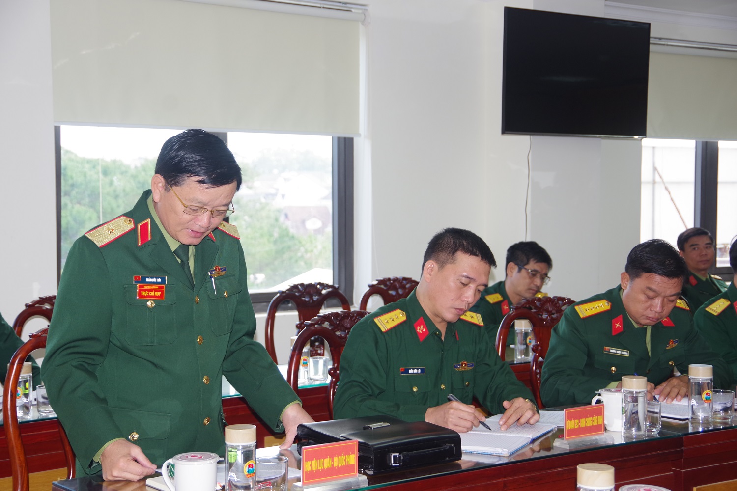 (QK7 Online) - Ngày 3/10, Bộ Tư lệnh Quân khu 7 tổ chức hội nghị rút kinh nghiệm sau 3 tháng tổ chức lại cơ quan quân sự địa phương gắn với thực hiện chính quyền địa phương 2 cấp bằng hình thức trực tiếp và trực tuyến đến các điểm cầu: Bộ Tư lệnh Thành phố Hồ Chí Minh; Bộ CHQS các tỉnh Đồng Nai, Lâm Đồng, Tây Ninh và Ban chỉ huy Phòng thủ khu vực các tỉnh. Tại điểm cầu Sở chỉ huy Quân khu, Thiếu tướng Lê Xuân Thế, Tư lệnh Quân khu chủ trì hội nghị. Tham dự hội nghị có Thiếu tướng Trần Vinh Ngọc, Bí thư Đảng ủy, Chính ủy Quân khu; các đồng chí trong Thường vụ Đảng ủy, Bộ Tư lệnh Quân khu; thủ trưởng các cơ quan, các phòng chức năng Quân khu và Trường Quân sự Quân khu.