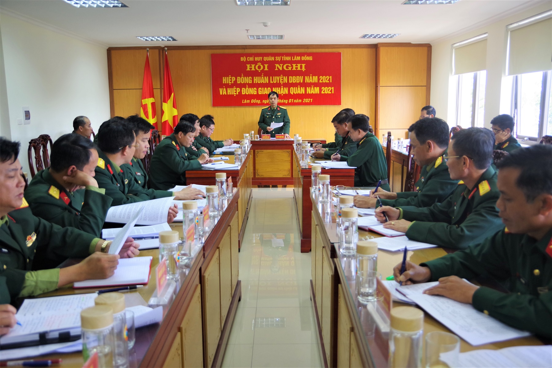 (QK7 Online) - Chiều 12/1, Bộ CHQS tỉnh Lâm Đồng tổ chức hội nghị hiệp đồng giao, nhận quân giữa Ban CHQS 12 huyện, thành phố với các đơn vị nhận quân gồm: Học viện Lục Quân, Lữ đoàn Công Binh 293, Sư đoàn 5, Sư đoàn 302 và Trường Quân sự Quân khu 7.