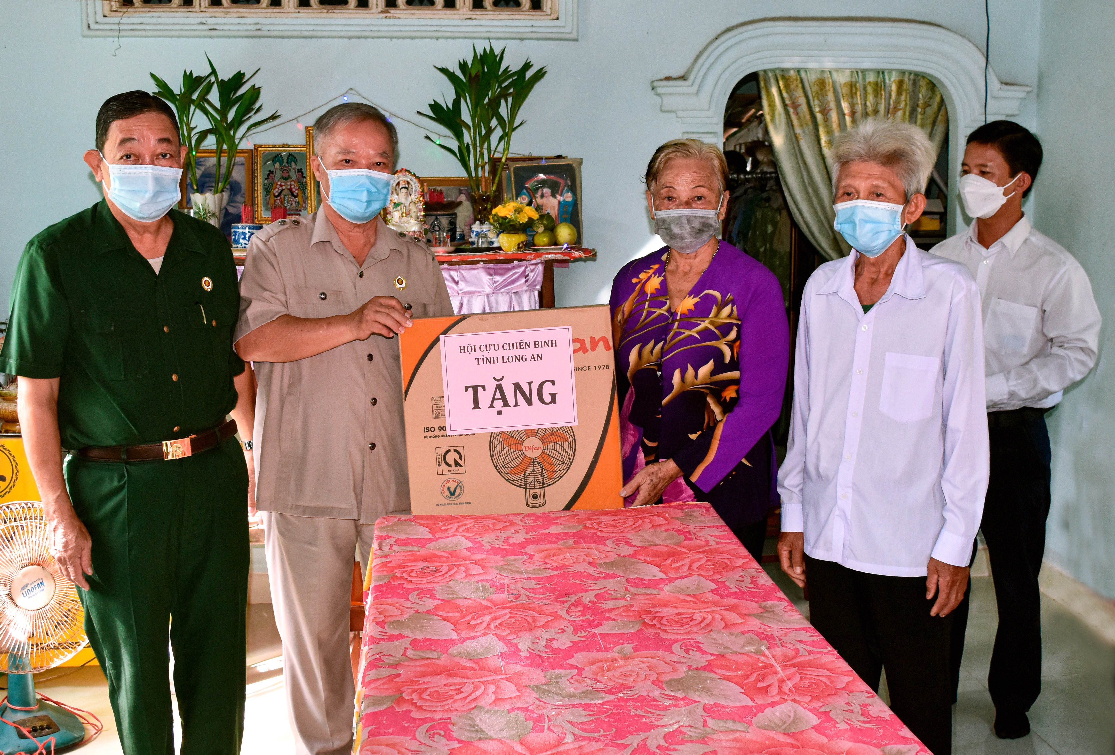 Trong dịp này, Hội CCB tỉnh Long An và chính quyền địa phương trao tặng gia đình bà Võ Ngọc Lê nhiều phần quà là các vật dụng thiết yếu trong sinh hoạt hàng ngày. Đây là tấm lòng, tình cảm, trách nhiệm của Hội CCB tỉnh góp phần giúp đỡ, động viên gia đình CCB vượt qua khó khăn, ổn định cuộc sống.