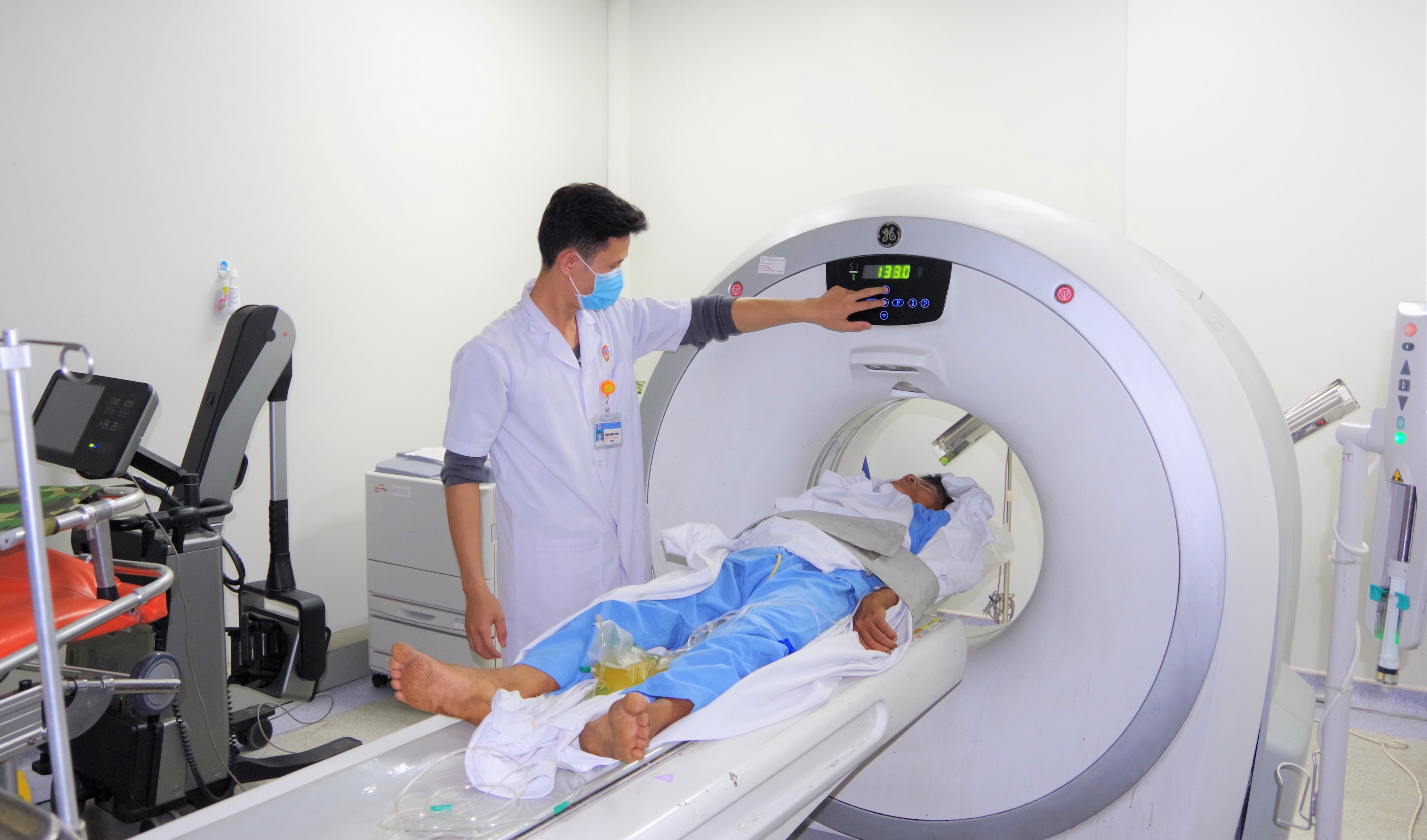 Tại Bệnh viện Quân y 175, bệnh nhân được chẩn đoán hôn mê, kết quả chụp CT, scan đánh giá bệnh nhân có tình trạng tắc mạch, nhồi máu não bán cầu diện rộng, có đường đè ép ở giữa khoảng 10 mm.