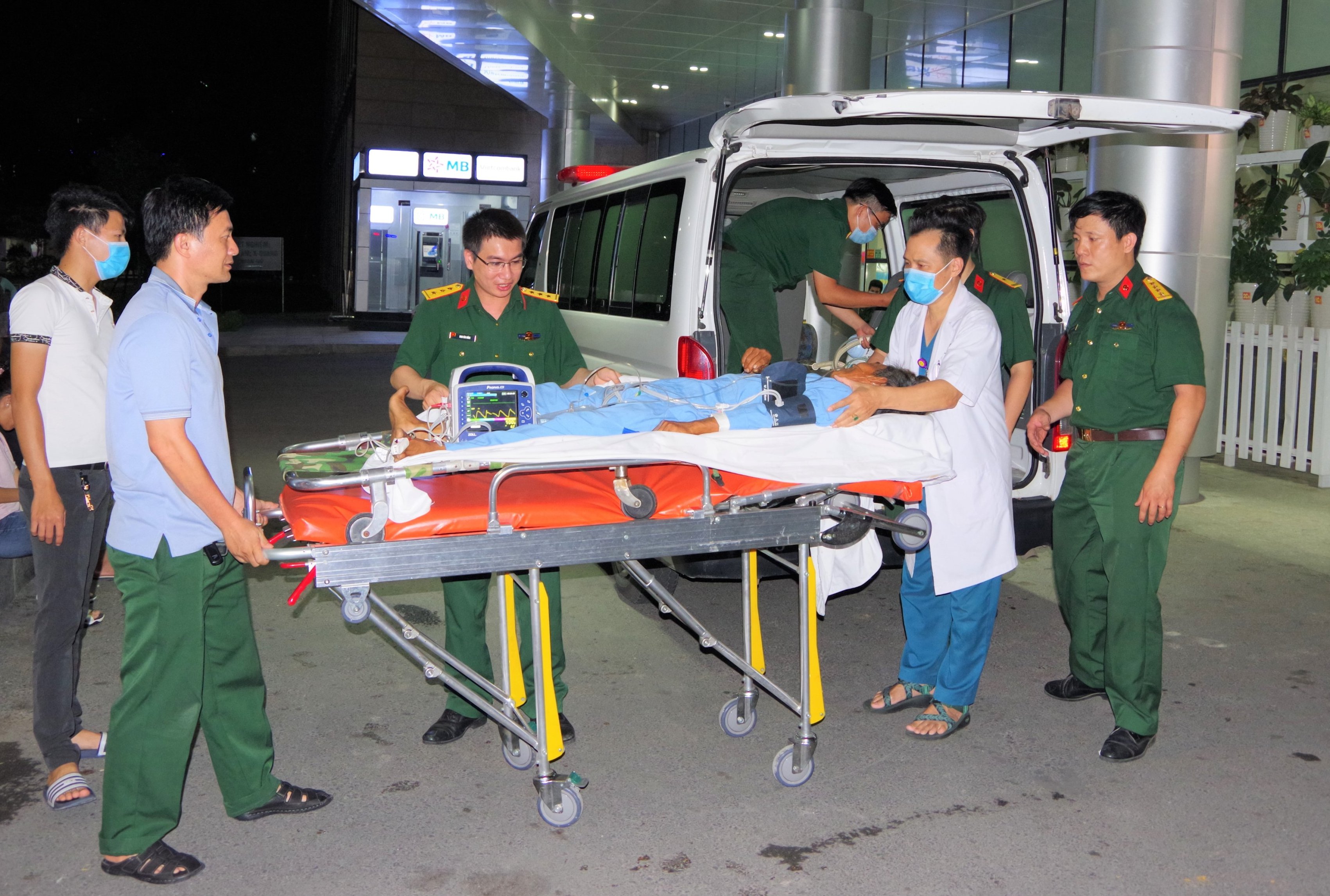 Tại đây, bệnh nhân được các y bác sĩ chẩn đoán theo dõi đột quỵ não bán cầu phải giờ thứ 12. Bệnh nhân có chỉ định vận chuyển cấp cứu về đất liền. Nhận nhiệm vụ, Tổ cấp cứu đường không của Bệnh viện Quân y 175 nhanh chóng lên đường đảo Trường Sa. Sau 3 giờ đồng hồ, trực thăng tới bệnh xá đảo Trường Sa, tiến hành vận chuyển bệnh nhân vào đất liền lúc 22 giờ cùng ngày.