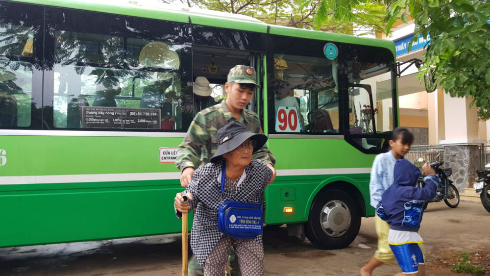 Bộ đội Biên phòng vận động, hỗ trợ người dân huyện Cần Giờ di chuyển đến nơi trú bão an toàn. Ảnh: Tuổi Trẻ