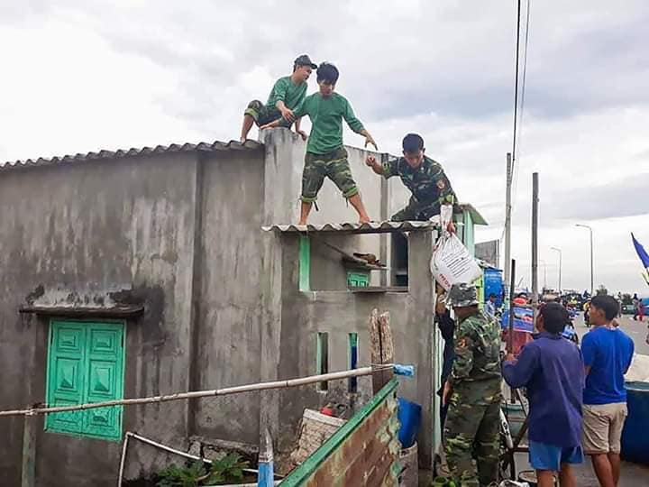Sau đây là một số hình ảnh cán bộ, chiến sĩ giúp người dân phòng chống cơn bão số 9: