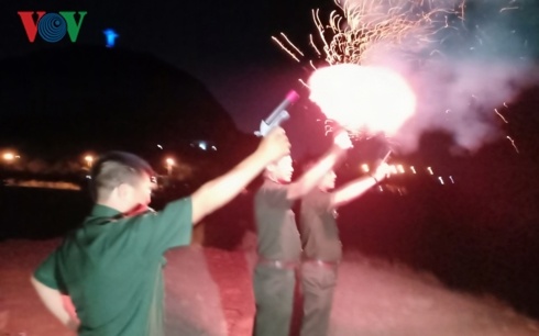 Bộ đội Biên phòng bắn pháo hiệu báo bão số 9 ở  tỉnh Bà Rịa-Vũng Tàu. (Ảnh: VOV).