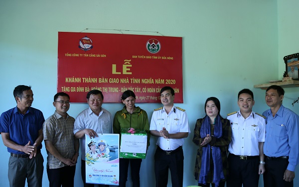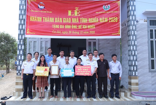 Ba căn nhà tình nghĩa được xây dựng, gồm: Gia đình ông Bế Ích Nghĩa, sinh năm 1947, trú tại xã Trúc Sơn, huyện Cư Jút; gia đình Ông K’ Ngọc, sinh 1947, dân tộc Mạ, trú tại xã Đắk Nia và gia đình bà Hoàng Thị Trung, sinh năm 1980, dân tộc Tày, trú tại phường Quảng Thành, thành phố Gia Nghĩa, tỉnh Đắk Nông. Mức hỗ trợ xây dựng mỗi căn nhà là 80 triệu đồng, trích từ nguồn quỹ xã hội từ thiện của TCT Tân Cảng Sài Gòn.