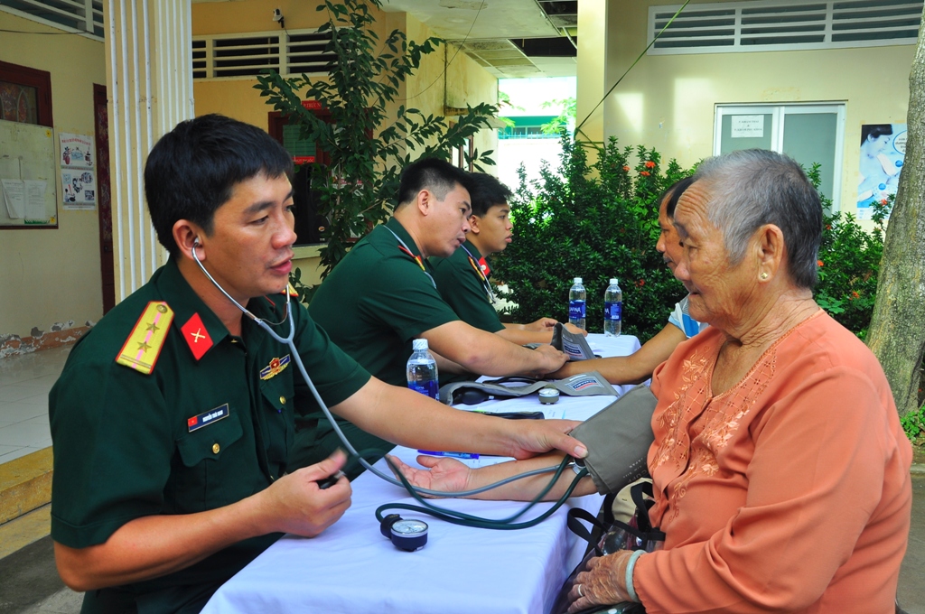 Cán bộ Quân y Tổng cục II khám bệnh cho đồng bào xã Tam Thôn Hiệp, huyện Cần Giờ