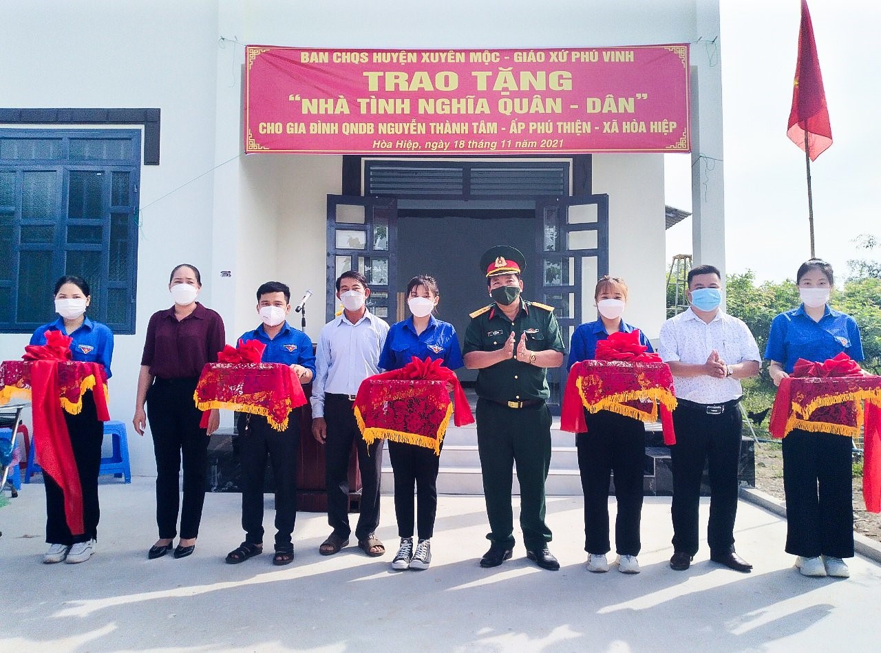 Được biết năm 2021, Ban CHQS huyện Xuyên Mộc xây tặng 3 căn “Nhà tình nghĩa quân – dân”, hiện đã trao được 2 căn, 1 căn nhà còn lại sẽ được trao trong tháng 12/2021.