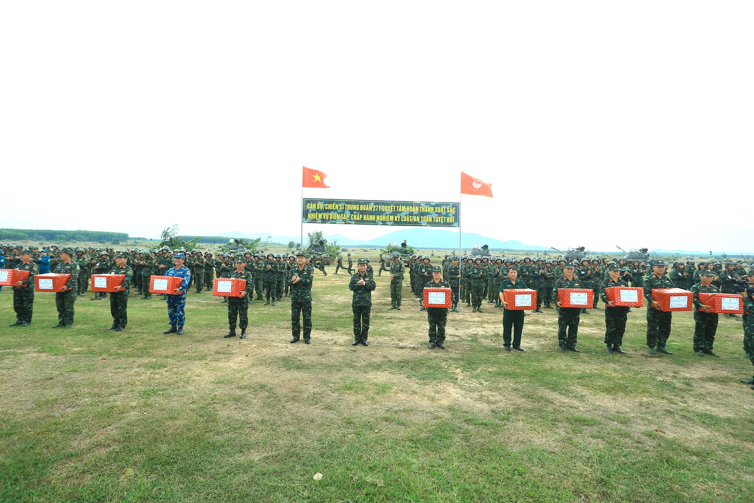 Thủ trưởng Bộ Tư lệnh Quân khu tặng quà chúc mừng các đơn vị hoàn thành tốt nhiệm vụ diễn tập chiến thuật bắn đạn thật cấp Tiểu đoàn năm 2023.