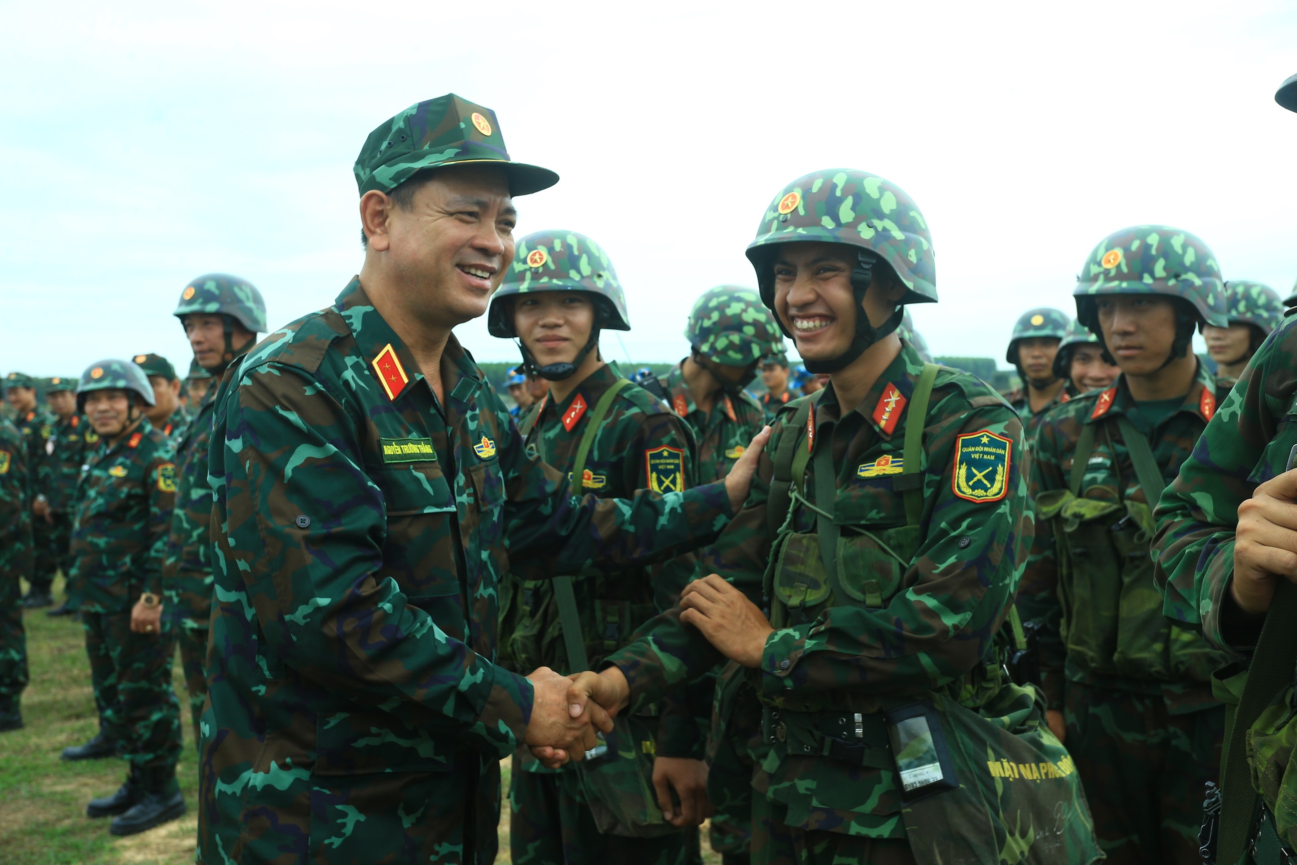 Trung tướng Nguyễn Trường Thắng, Ủy viên Trung ương Đảng, Tư lệnh Quân khu động viên, chúc mừng cán bộ, chiến sĩ Tiểu đoàn 9, Trung đoàn 271 hoàn thành nhiệm vụ diễn tập năm 2023.