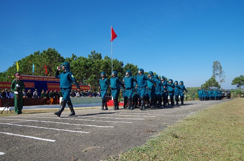 Khối dân quân thường trực duyệt đội ngũ tại Lễ ra quân huấn luyện năm 2019 của tỉnh Lâm Đồng.