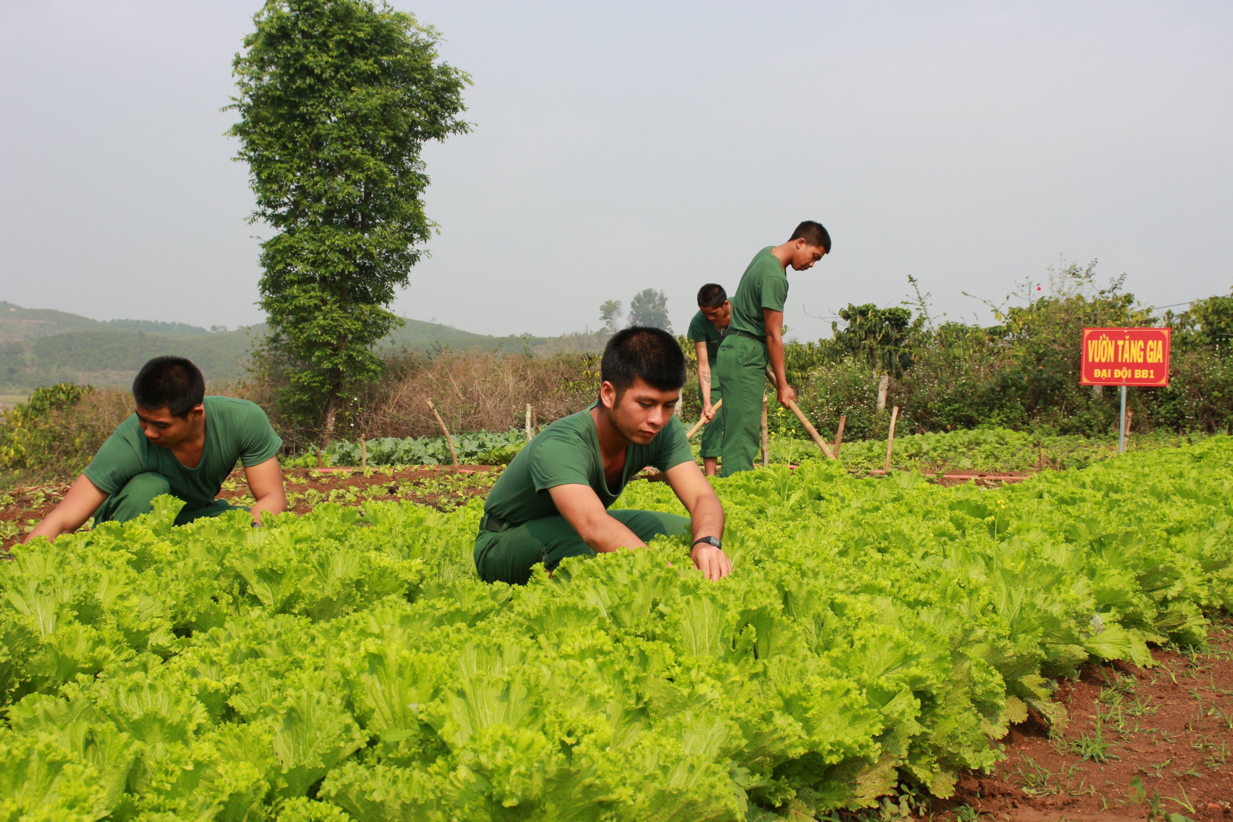 Tích cực tăng gia đảm bảo rau xanh phục vụ bữa ăn cho chiến sĩ mới.