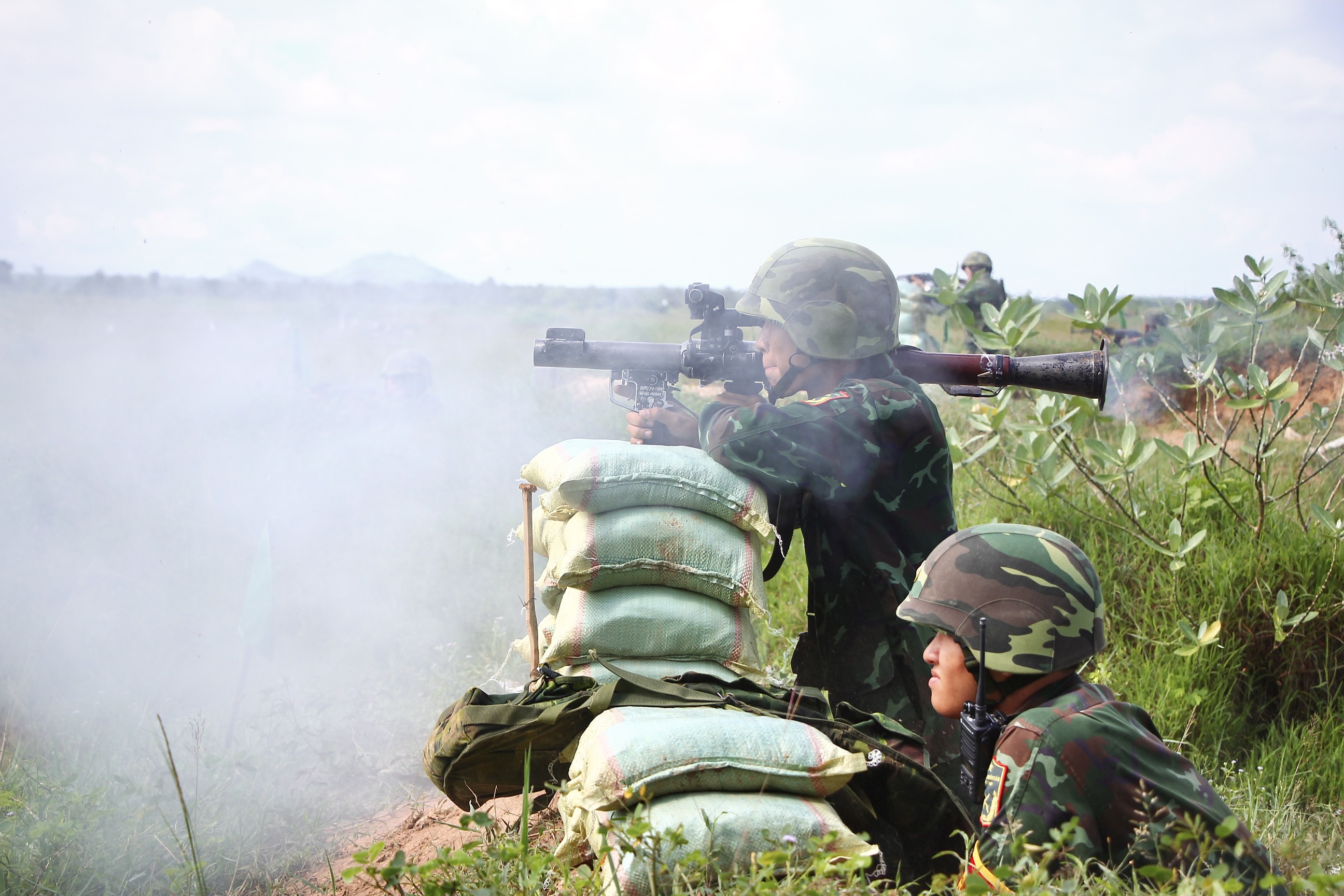 Xạ thủ B41 thực hành tiêu diệt mục tiêu.