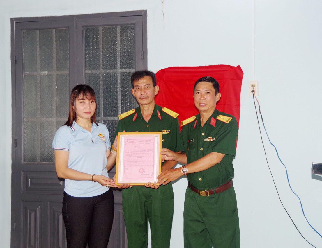 Thượng tá Lưu Trí Lực trao quyết định sở hữu ngôi nhà cho Thiếu tá Nguyễn Ngọc Đông và mong muốn trong thời gian tới đồng chí tiếp tục phấn đấu hơn nữa, khắc phục mọi khó khăn, hoàn thành tốt mọi nhiệm vụ được giao, luôn gương mẫu, đoàn kết với hàng xóm, chấp hành nghiêm pháp luật Nhà nước, qui định của địa phương.