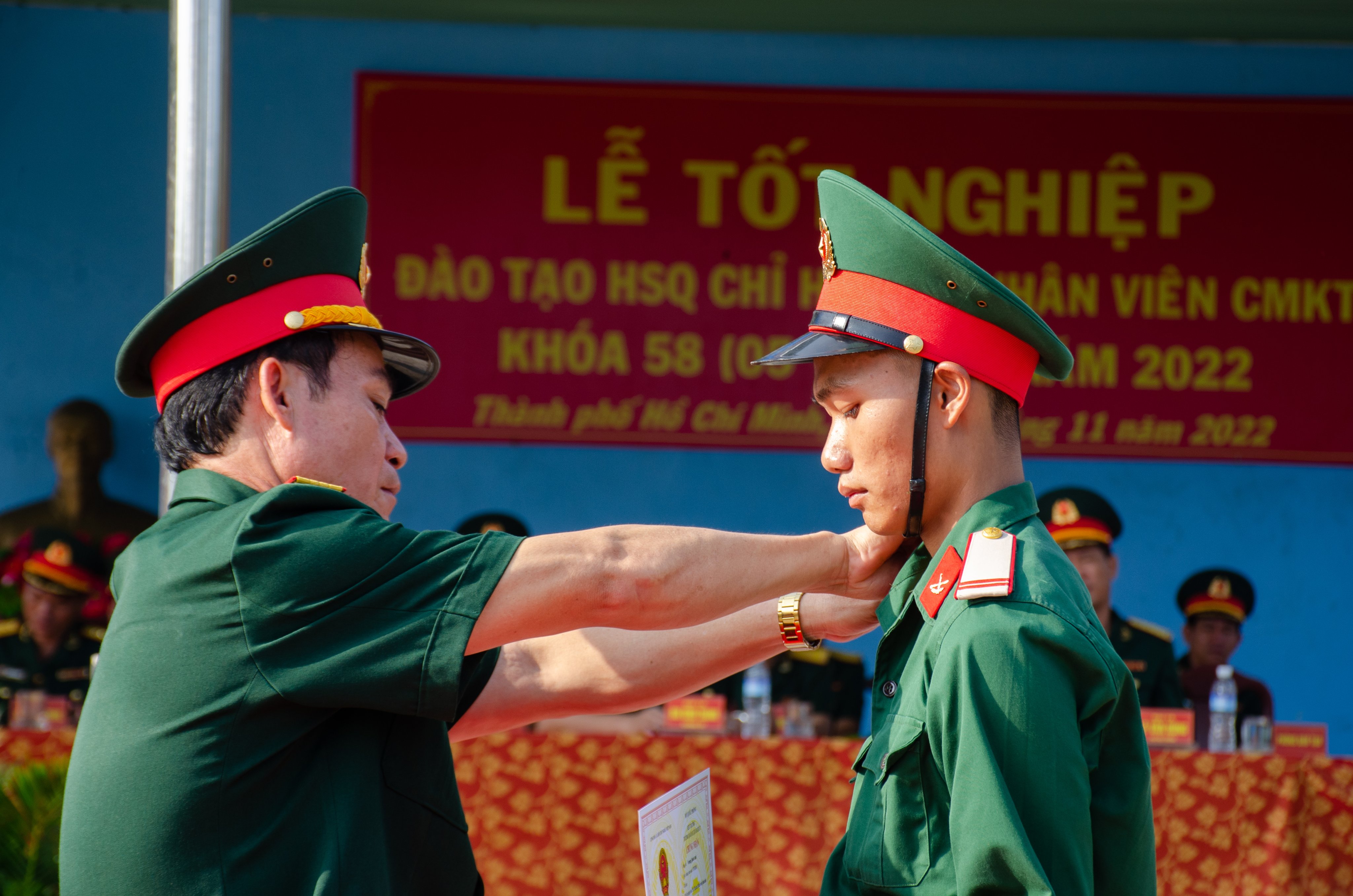 Đại tá Trần Ngọc Minh, Hiệu trưởng Trường Quân sự Quân khu trao quân hàm cho Hạ sĩ quan - nhân viên chuyên môn kỹ thuật trong lễ tốt nghiệp.