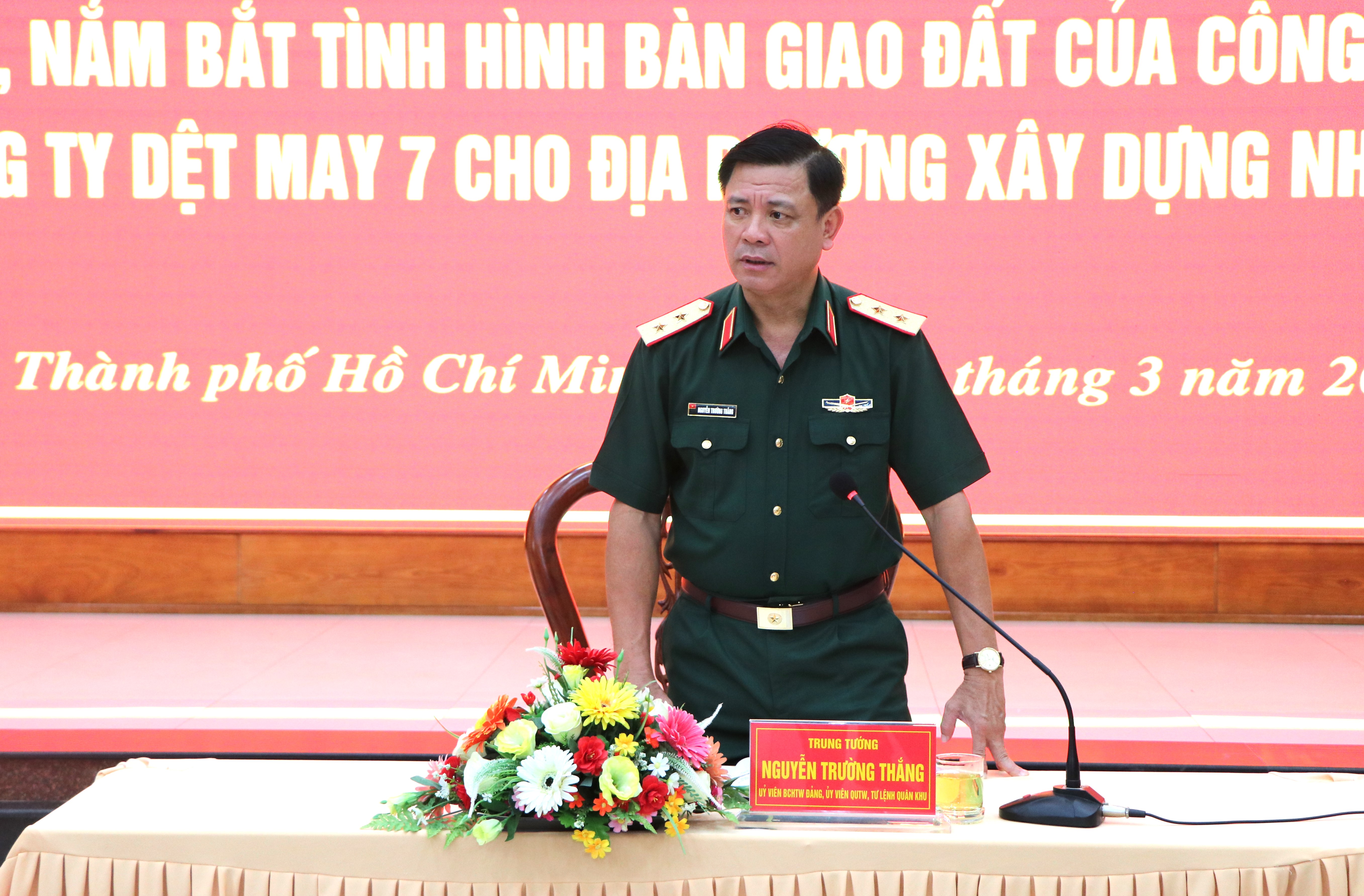 Thực hiện ý kiến kết luận của đồng chí Thượng tướng Nguyễn Tân Cương, Tổng Tham mưu trưởng QĐNDVN, Thứ trưởng Bộ Quốc phòng tại buổi làm việc với lãnh đạo TPHCM về bàn giao đất quốc phòng để thực hiện dự án và chỉ đạo của Thủ trưởng Bộ Tư lệnh Quân khu, công ty Dệt May 7 đã chủ động sắp xếp, tháo dỡ mặt bằng, sửa chữa nhà xưởng và lập phương án di dời máy móc thiết bị để tiến hành bàn giao đất cho địa phương. Công ty Tây Nam đã làm việc với các bên liên quan thống nhất các phương án bàn giao đất quốc phòng.