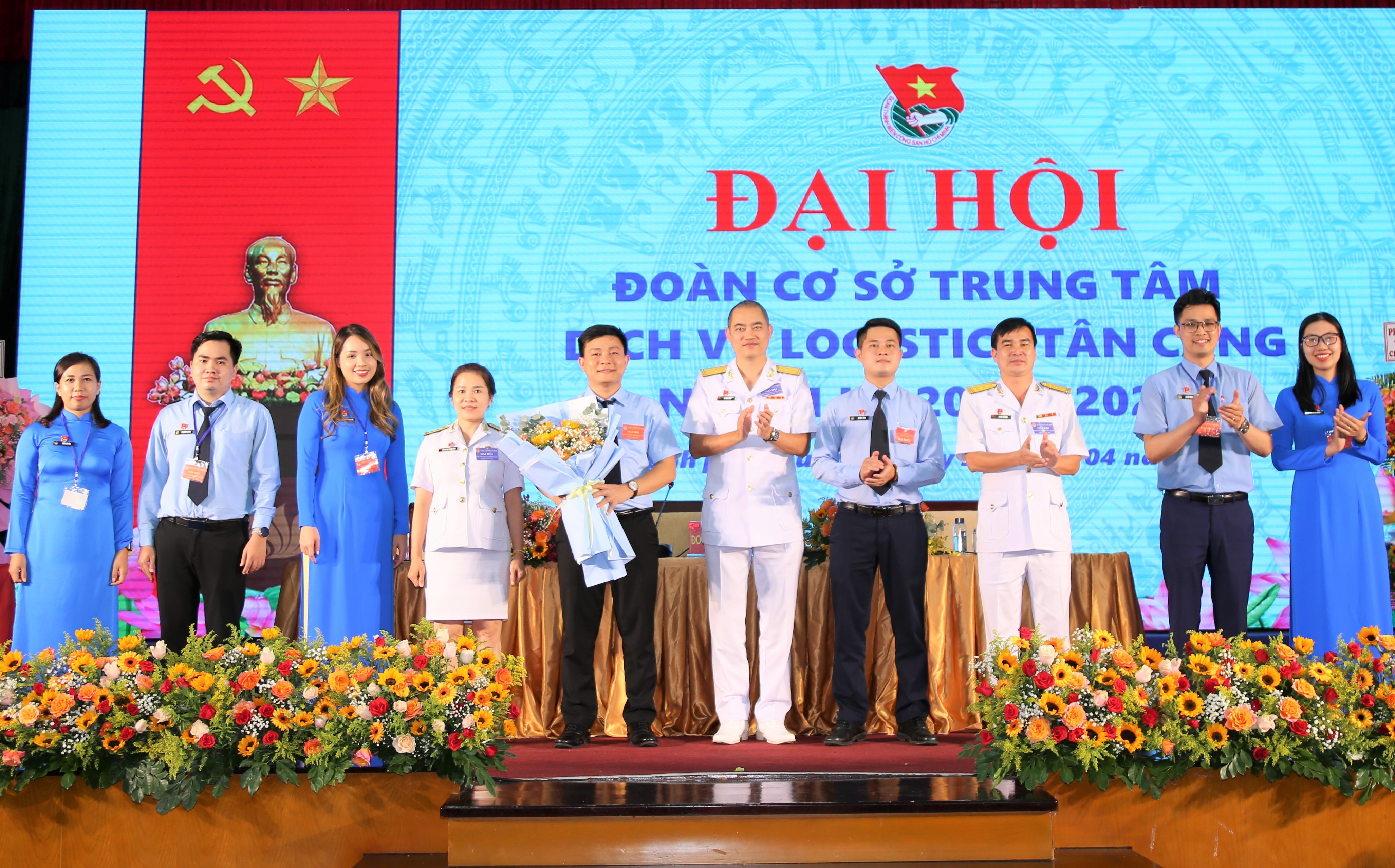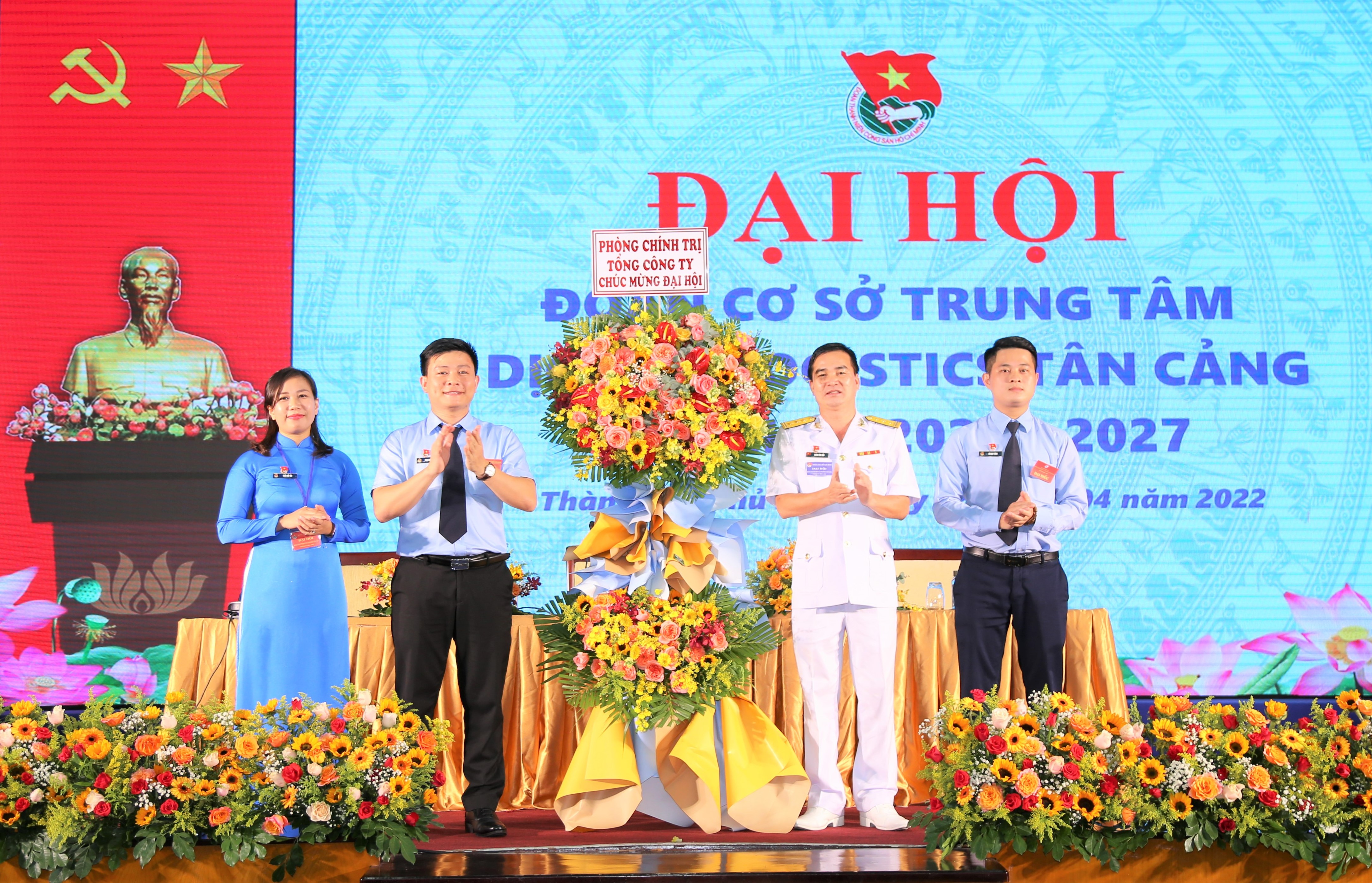 Thủ trưởng Phòng Chính trị Tổng công ty và lãnh đạo Trung tâm DV Logistics Tân Cảng chúc mừng Ban chấp hành Đoàn cơ sở nhiệm kỳ mới và Đoàn đại biểu dự Đại hội đại biểu Đoàn TNCS Hồ Chí Minh Tổng công ty.