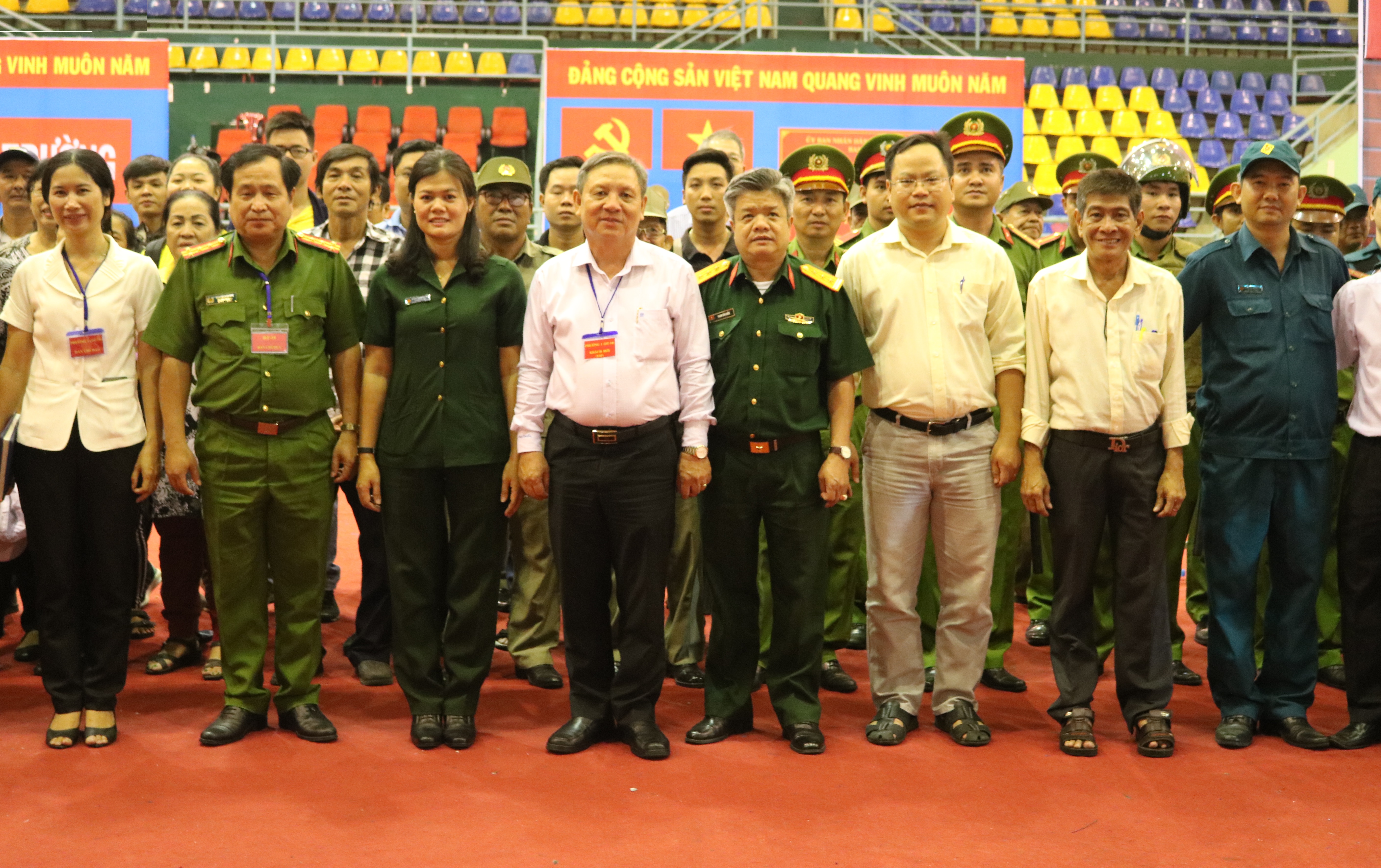 Đại diện các lãnh đạo chụp hình lưu niệm với lực lượng tham gia diễn tập
