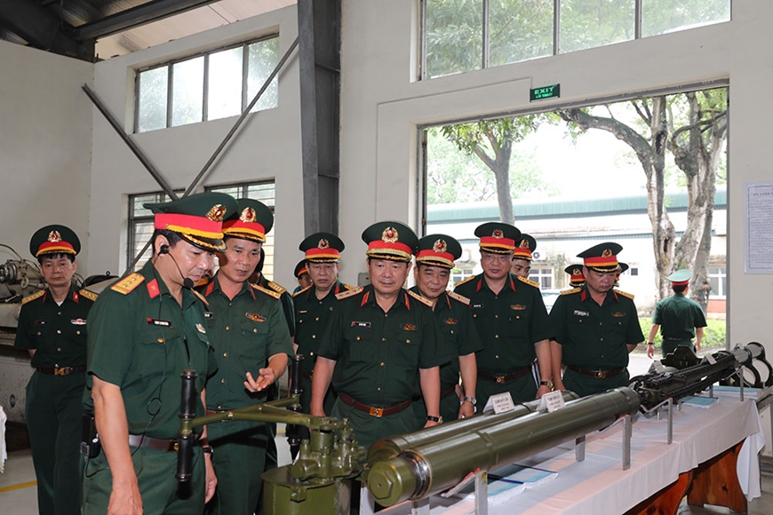 Thượng tướng Lê Huy Vịnh kiểm tra công tác sản xuất, sửa chữa tại Nhà máy Z133 (Tổng cục Kỹ thuật), ngày 31-5-2022. Ảnh: NGUYỄN BẰNG.