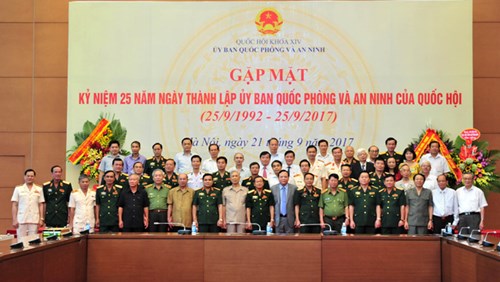 Phó chủ tịch Quốc hội Đỗ Bá Tỵ chụp ảnh lưu niệm cùng các đại biểu tham dự kỷ niệm 25 năm thành lập Ủy ban Quốc phòng và An ninh