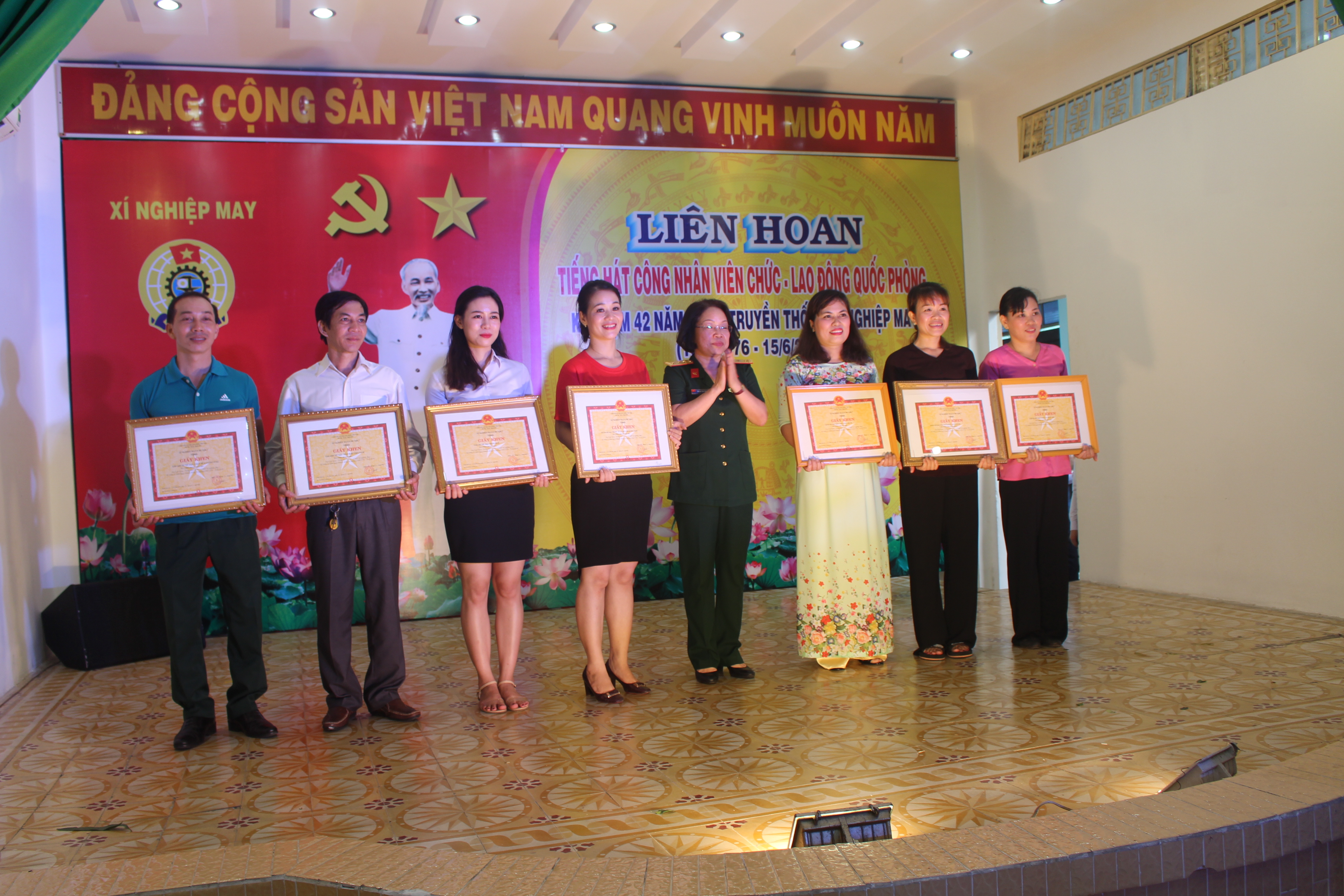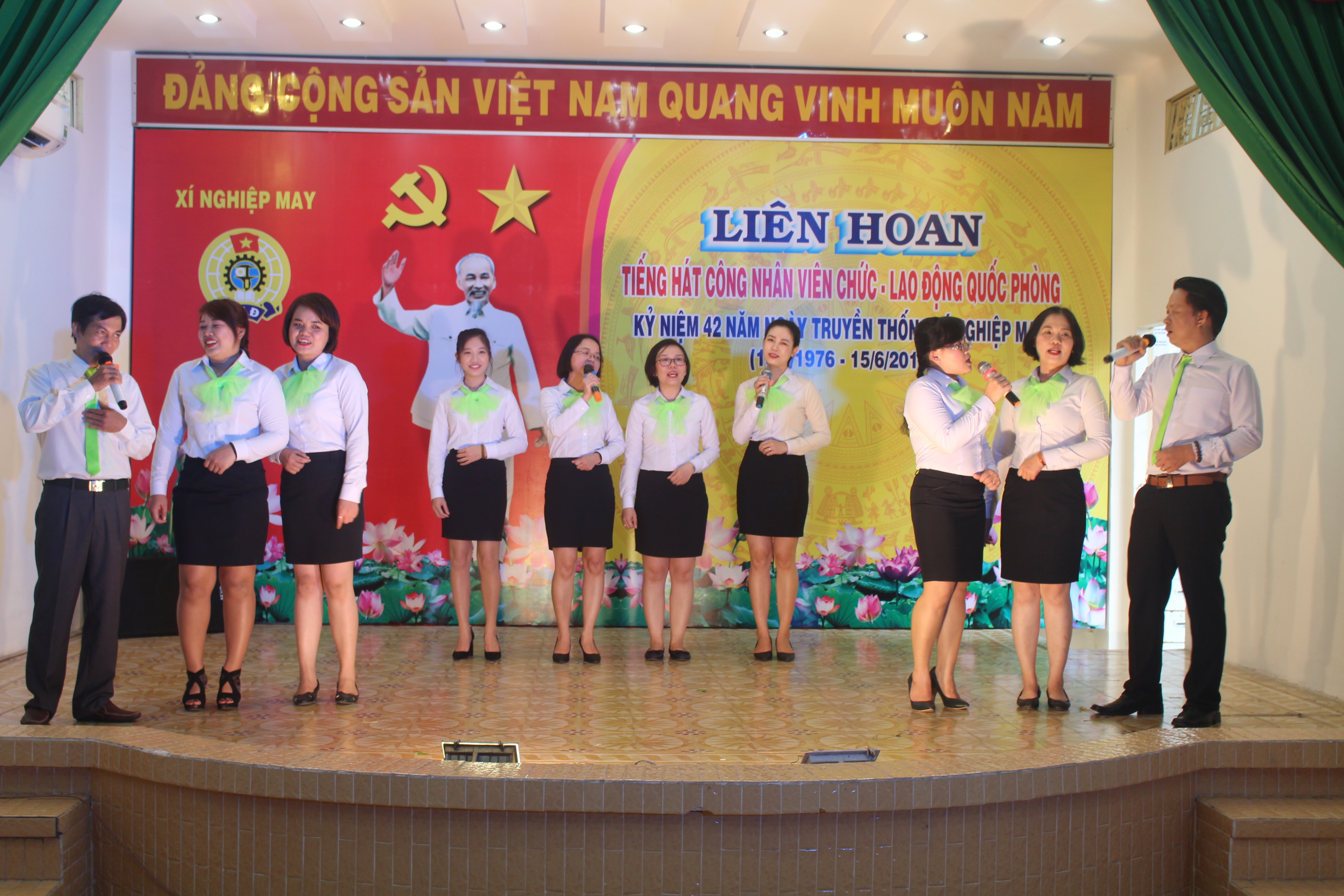 Tham gia liên hoan có gần 100 diễn viên không chuyên đến từ các phòng, ban, chuyền, tổ chức quần chúng của xí nghiệp với gần 30 tiết mục đơn ca, song ca, ca cổ, ca múa nhạc với những làn điệu ba miền ngọt ngào tập trung ca ngợi tấm lòng bao la như biển cả của Bác Hồ kính yêu, tình yêu quê hương, đất nước, truyền thống ngành Dệt May Quân đội nói chung và truyền thống Xí nghiệp May, Cục Hậu cần nói riêng.