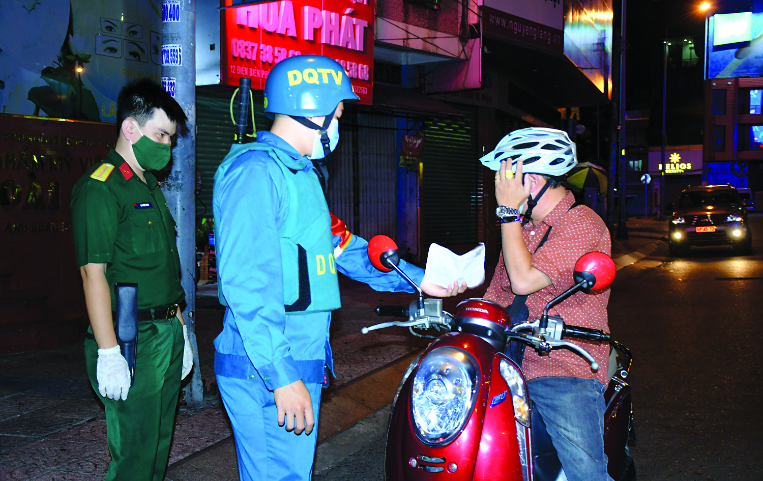 LLVT Quận 1, TPHCM phối hợp kiểm tra người ra đường sau 18 giờ. Ảnh: Tấn Chí